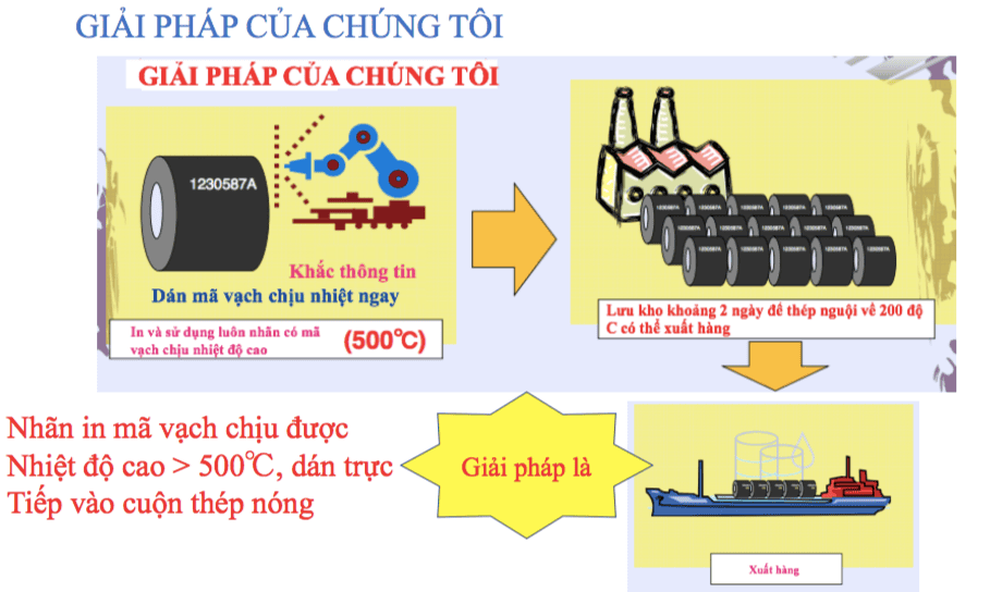 Tiết kiệm thời gian, tăng năng suất: Không phải mất thời gian chờ đợi cuộn thép nguội để kiểm và dán lại mã vạch. Mã vạch được in và dán luôn trên cuộn thép nóng. Giảm thời gian chờ đợi xuất hàng từ 5 ngày xuống còn 2 ngày